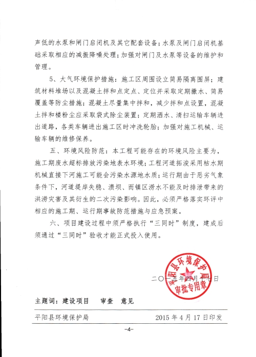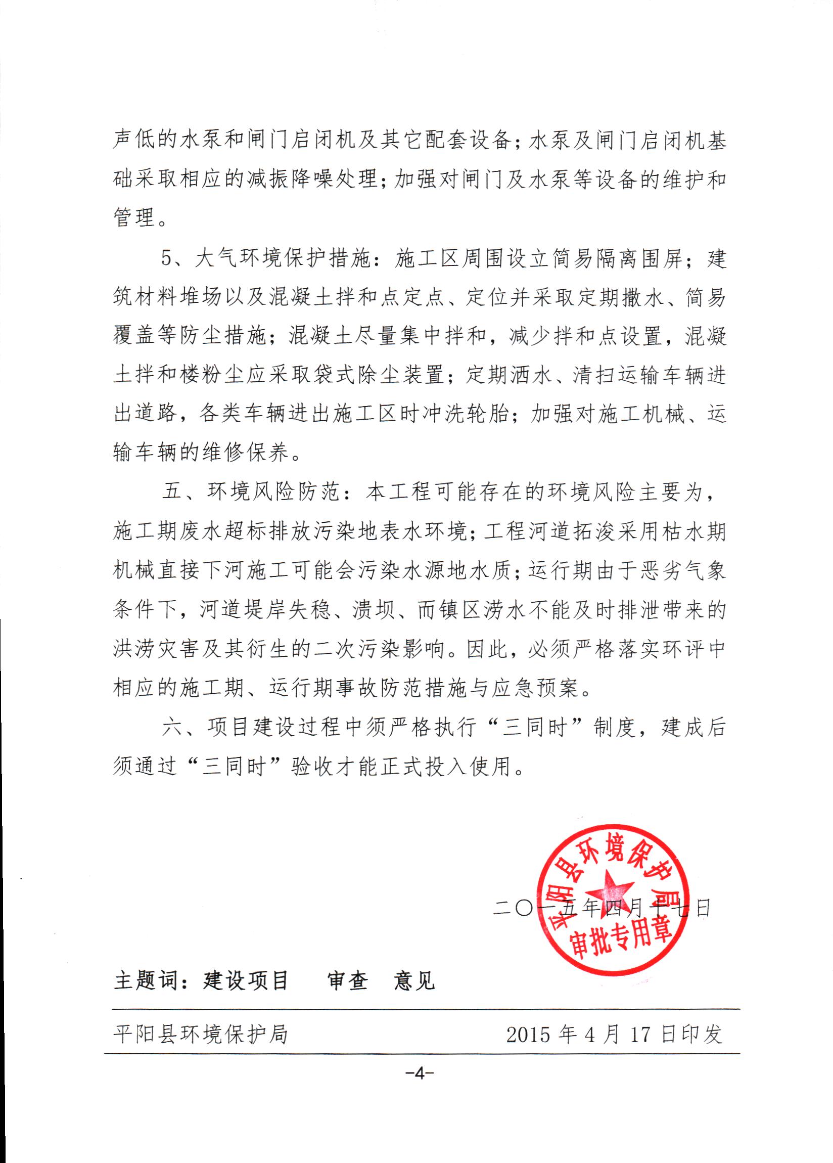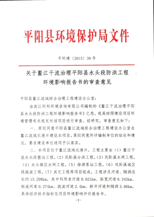 關(guān)于鰲江干流治理平陽縣水頭段防洪工程環(huán)境影響報(bào)告書的審查意見