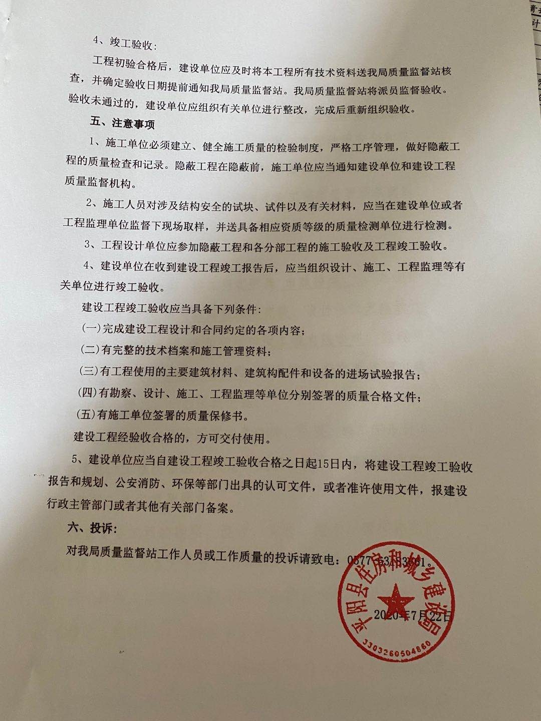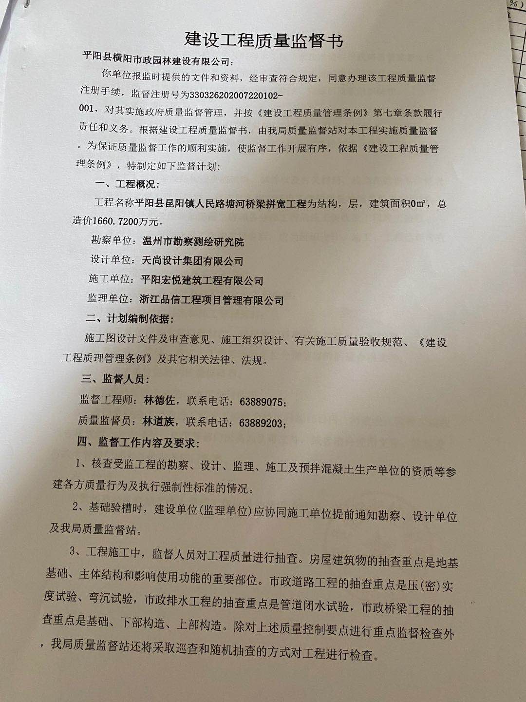 塘河橋工程質(zhì)量監(jiān)督書