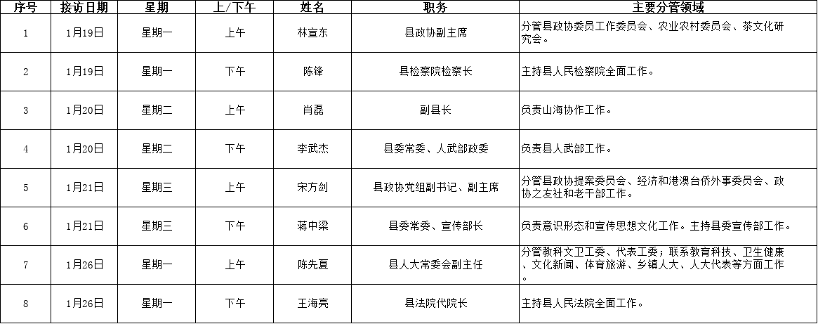 平陽縣領導接訪日程安排表(1月19日-1月31日)
